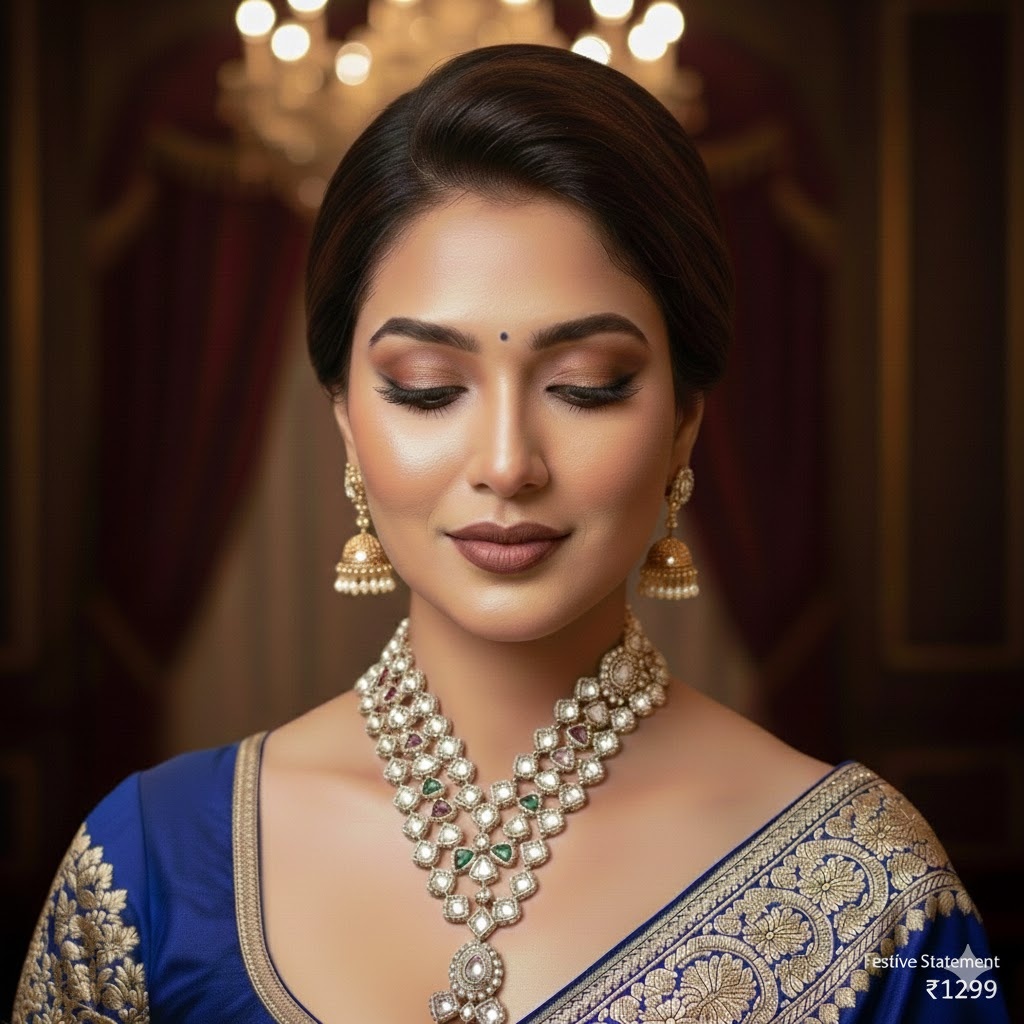 Pull the premium silk dori bead at the back to adjust length perfectly to your neckline.
